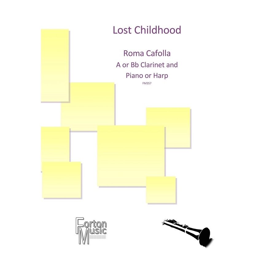 A or Bb Clarinet and Piano/Harp - Lost Childhood was inspired by thoughts and images of the composer's childhood after a deep conversation with her mother. At that time the composer was very ill and her mother outlined her thoughts about life and some of the regrets (we all have in a lifetime). This struck a resonant chord within the composer and this work is the product of the anguish caused by the conversation. Composed for clarinet and piano (also playable with harp) this heart-rending, beautiful work explores the different stresses and strains and moods of childhood and adolescence and is essentially autobiographical. It reflects the heartbreak of separation from her family when she was sent to boarding school which indeed seemed like incarceration in a "lost childhood".